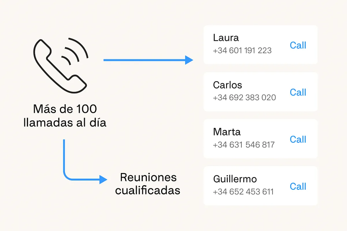 Normalmente nuestros clientes ven las primeras reuniones en la primera semana de trabajo. A partir de ahí, el volumen crece de forma estable hasta llenar tu agenda.